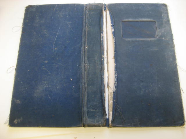 On the other side of the project, I dis-bound the book and discarded the text block. I would retain the boards and planned to re-cover them with new book-cloth similar to the original.