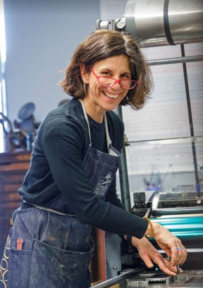 | Li Jiang is a letterpress printer, graphic designer, bookbinder and print maker. Originally from Chengdu, China, Li has always been artistic and hands-on. After receiving a BA in Graphic Design she found her way to letterpress printing and continues to gain as much arcane knowledge as possible about the craft from Bay Area printing masters. She has been practicing letterpress printing for nearly 20 years and is the proprietor of Lemoncheese Press in Berkeley, California. Her work can be found on the Web and Instagram under [lemoncheese.press] In addition to working with individual clients, Li is also a member of many Bay Area bibliophilic and printing organizations such as the Colophon Club, Roxburghe Club of San Francisco, Moxon Chappel, and is currently the Board Secretary at the Book Club of California. Li has lead iron handpress demonstrations and lectures at SF Center for the Book, SF Public Library, USF Gleeson Library, and the Book Club of California. In her most recent publication, 36 Views of the Golden Gate Bridge, Li uses a technique she has developed for creating polymer printing plates without the use of a computer. Images are created by directly scratching into the film which is used to create the polymer plates for letterpress printing, creating an unique look that is a marriage of color wood engraving and etching. The multi-colored prints range from five colors to as many as eleven colors. This technique requires extremely tight registration, which is a skill Li has been honing for many years. The book has been collected by Bay Area institutions and collectors alike. |