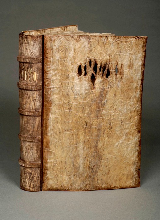 Manifest, O presents the experience of losing one’s hearing in visual terms. The pages are handmade of semi-translucent abaca; ‘printed’ as the sheets were formed, with holes in place of letterforms; the words have all dropped from the pages. Each page was individually sized and stained to recall aged parchment. Illustrated with drawings in five shades of Prismacolor pencil. Sewn to hemp cords, with linen back-bead endbands. Modified lap-component binding, with spine and boards of cast kozo; boards covered in transparent calf skin vellum (which was deliberately encouraged to cockle), edge-dyed, with joints of sanded goat skin. Created with the generous support of the Ragdale Foundation, The Vermont Studio Center, and a Columbia College Chicago Faculty Development Grant. 46 x 35 x 9 centimeters. Created 2006. Melissa Jay Craig holds an MFA from the School of the Art Institute of Chicago, where she was awarded an Anna Louise Raymond Traveling Fellowship. She is Artist-in- Residence at the Columbia College Chicago Center for Book and Paper Arts, where she teaches artist’s books, installation, sculptural paper, thesis practicum and even an occasional bookbinding class, in the Interdisciplinary Arts Department’s MFA in Book and Paper Arts degree program. Her sculptural book works, usually constructed of her own hand-processed paper, have been exhibited internationally. Represented in many public book collections, Melissa has been awarded ten consecutive residencies at the Ragdale Foundation, residencies at the Mary Anderson Center for the Arts, and the Vermont Studio Center, an Illinois Arts council finalist’s grant for Artist’s books, a Vermont Studio Center Artist’s Grant, and a Columbia College Faculty Development Grant, which helped her to complete Manifest, O. She has also received the Full-time Faculty Excellence in Teaching Award, and has served two years as a Fellow of the Center for Teaching Excellence at Columbia College Chicago. Website at www.melissajaycraig.com. |