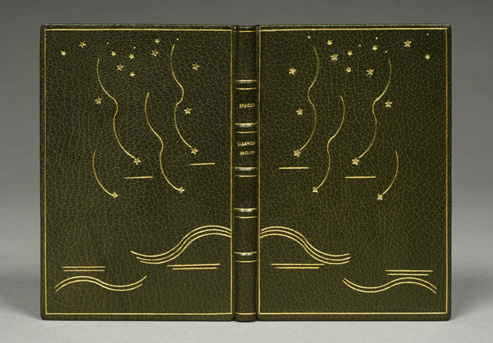Bound in full dark green goat skin; sewn on five single raised cords; marbled endpapers; top edge gilt, green and purple multitier handsewn silk endband; title and design tooled in gold. 23 x 16 x 1.5 centimeters. Created n.d. Lent by Hope Weil Levene. Catherine Stanescu was born in Romania, first a teacher of literature with a degree from the University of Bucharest. Following her emigration to Geneva, Switzerland, she studied bookbinding with Alice Huguenin and Giocomini Picard from 1941 to 1946. In 1946, she and her husband emigrated to the United States. She taught bookbinding at the Craft Students League there from 1951–56, commuting once a week from her home in Virginia until 1956, when she opened her own studio in New York City. Following the collapse of communism in Eastern Europe, she returned to her native Romania. |