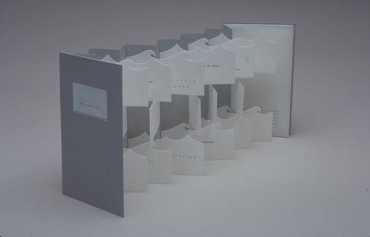 wave shaped pages letterpress printed. Cover is paper over