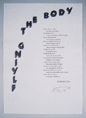 CAROLEE CAMPBELLis proprietor of Ninja Press, which she inaugurated in 1984. She designs books in limited editions, letterpress printed from handset type, and binds them by hand. She is also a photographer, working both in contemporary and 19th century photographic processes. |