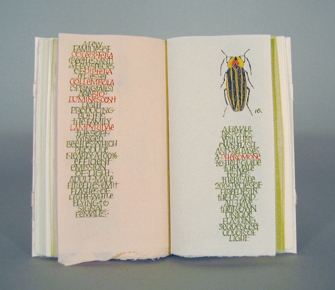 NANCY LEAVITT is a lettering artist specializing in one-of-a-kind manuscript books. She is a recipient of the 2002 Stephen Harvard Award, and Calligraphy Correspondent for the Guild of Book Workers' newsletter. Her work is well represented in public and private collections. |