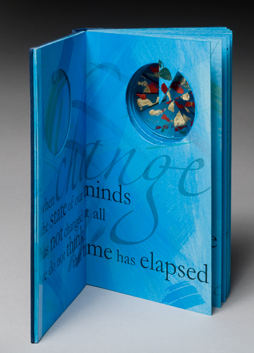 the passing of time. The book was bound in a modified drum leaf binding, with a distressed leather spine and Cialux Italian book cloth covers.