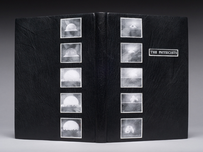 Silk-sewn endbands. Graphite top edge. Black doublures with foil stamping. Ink-jet printed flyleaves. Cover images depict the timed sequence of the first