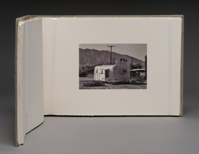 laser printed on Arches watercolor paper. A visit to the Salton Sea was the inspiration for this book. The deterioration of buildings through which people
