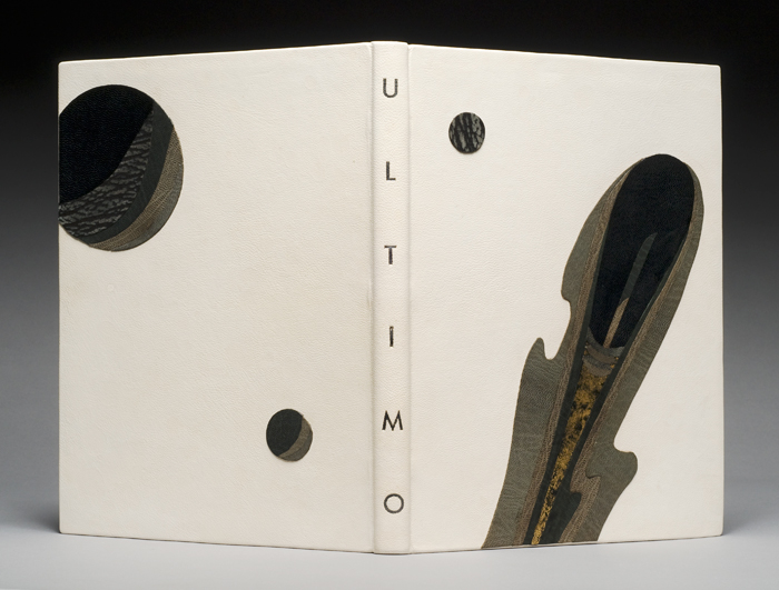 covered in full alum-tawed goat with décor of raised leather onlays and surface gilding, title in graphite. Ultimo tells the story of the death of the earth under